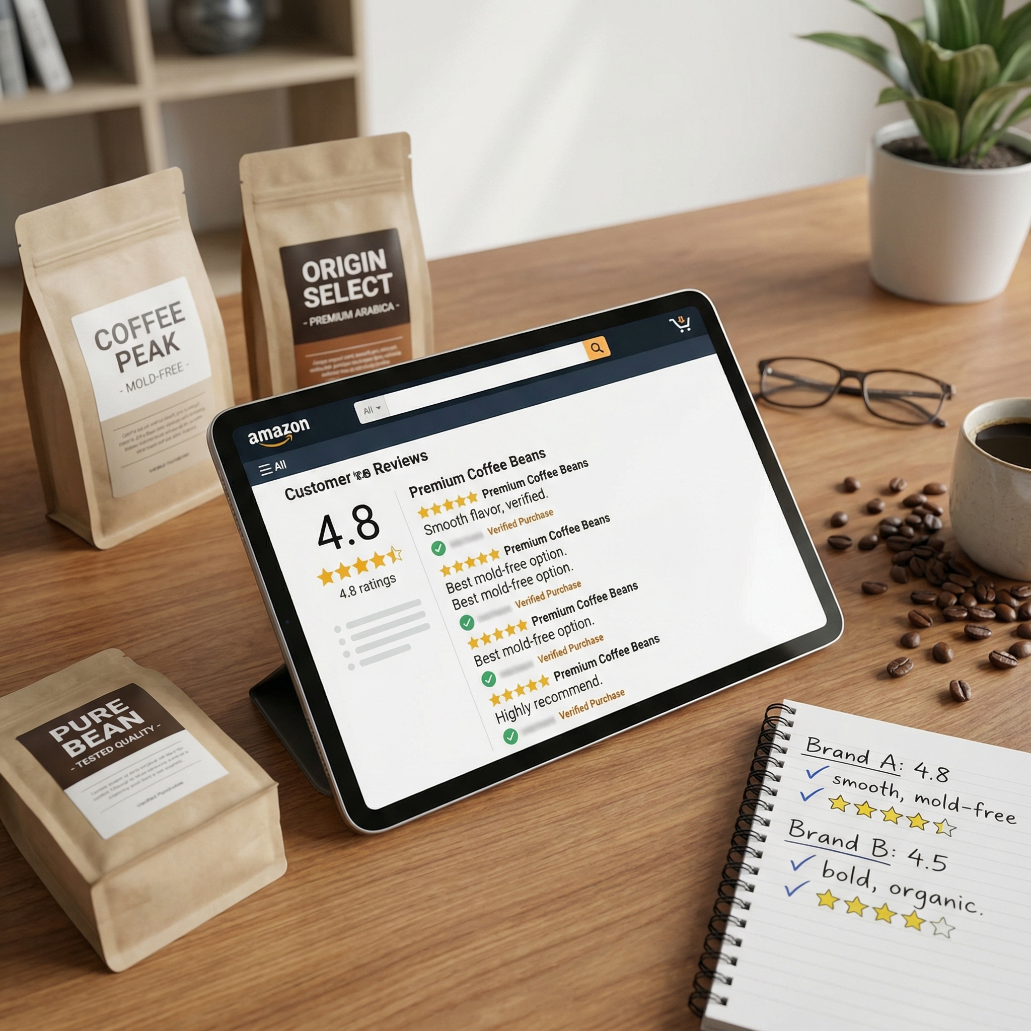 - Cross-reference ratings across multiple platforms including brand websites, Amazon, Google, and specialty coffee forums