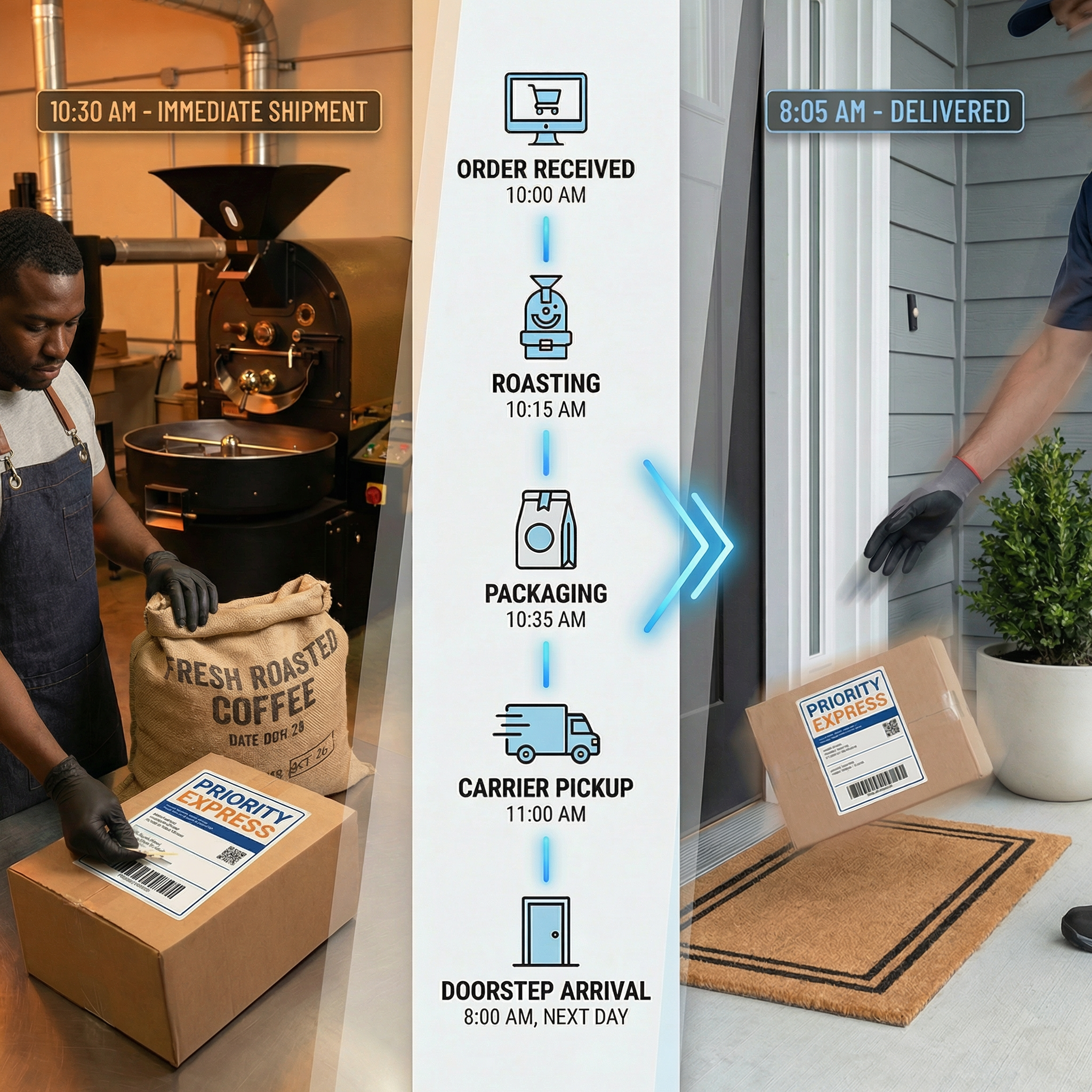 Express shipping for coffee only accelerates the final leg of delivery—the carrier transit phase. When brands require 2-3 days to roast, process, and fulfill orders before carriers even receive packages, paying premium shipping rates delivers marginal time savings that rarely justify the cost for most buyers outside genuinely urgent scenarios.