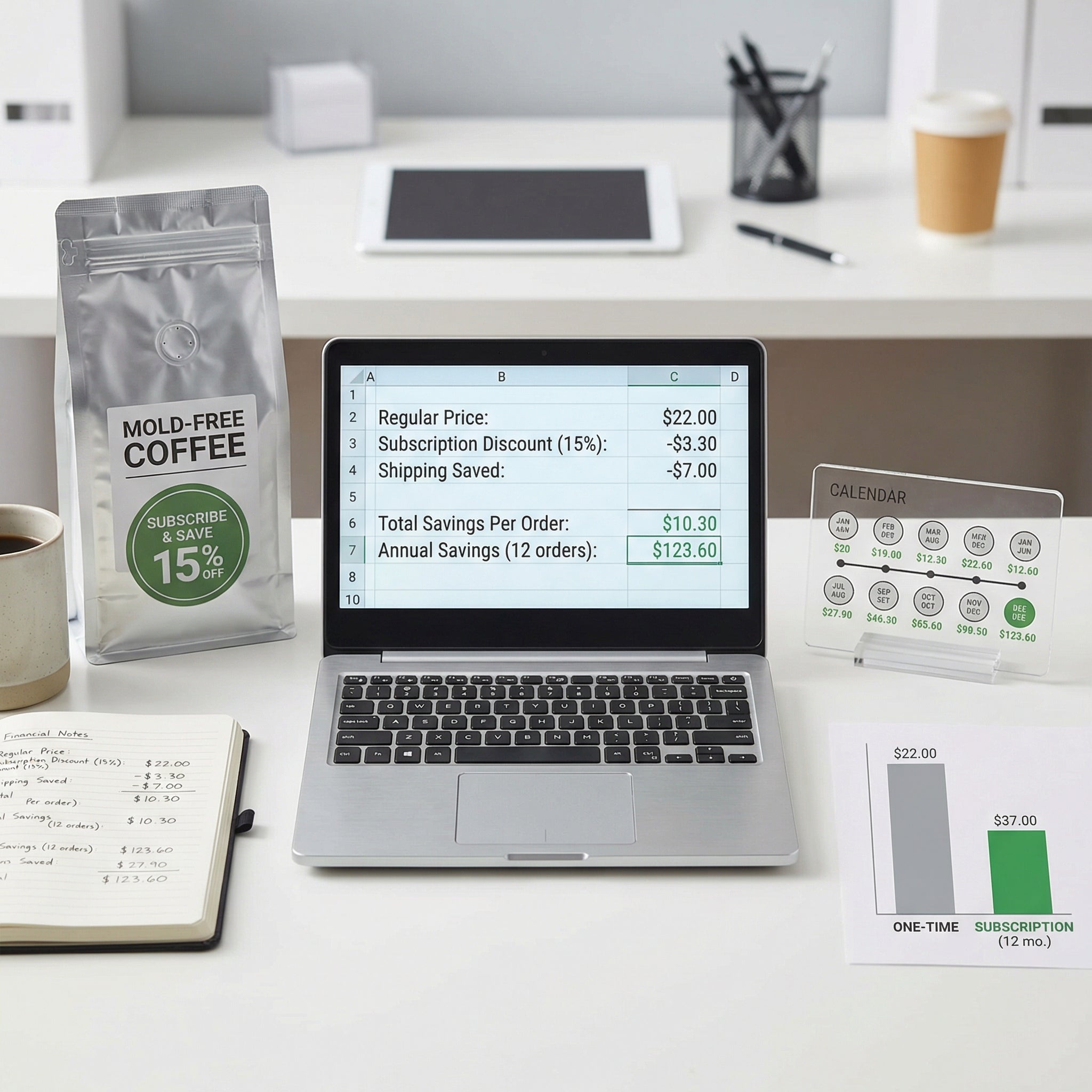 Most "Subscribe and Save" pitches focus on a simple percentage, but the true economic impact of a mold-free coffee subscription is much broader. This page provides a methodology for calculating your total annual savings by factoring in three distinct layers: the direct product discount (the 15-20% off), the shipping cost avoidance (saving $5-$10 per order), and the "waste reduction" value (only paying for what you consume through precise delivery timing). You will learn how to audit your current coffee spending, identify the "break-even" point for free shipping thresholds, and understand how a well-managed subscription acts as a financial tool for maintaining a high-performance health ritual.